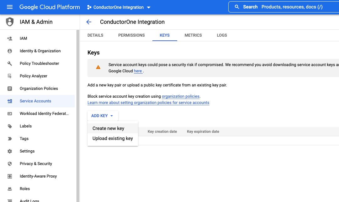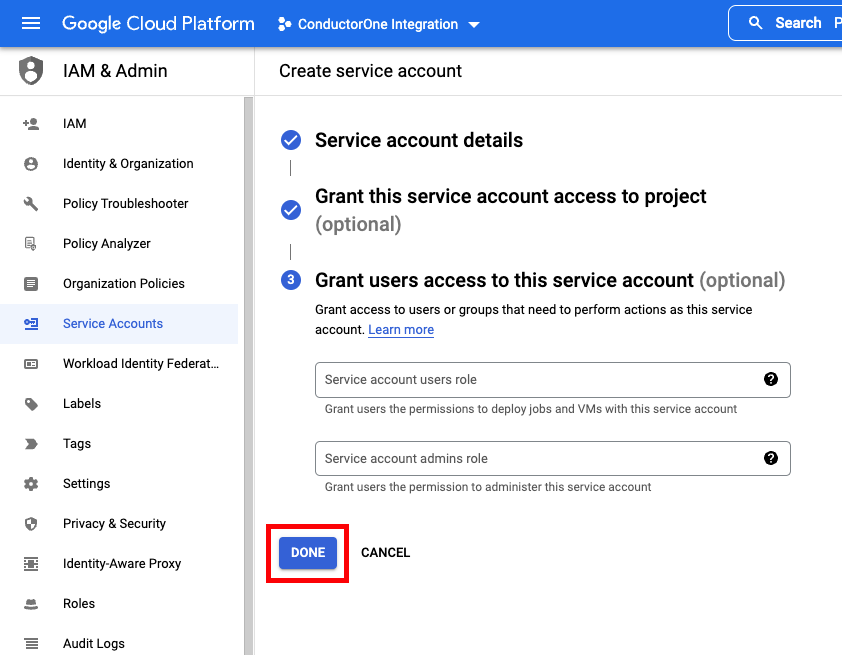 - Service account name: ConductorOne Integration